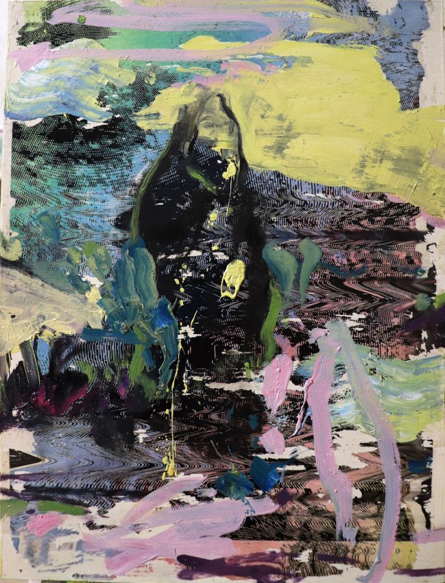 “Study for figure in a garden” Mixed media on fiberboard. 42 x 30 cm